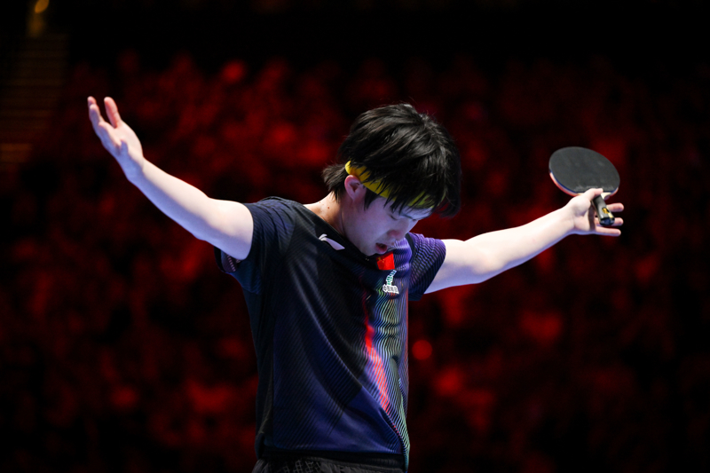 王楚钦倾尽全力赢下这场贫窭的比赛