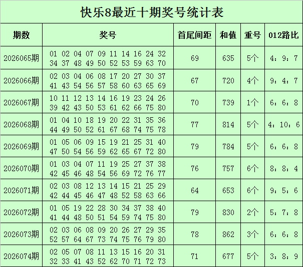 福彩自大8第2026074期开奖转头:02 05 07 08 11 13 15 16 20 31 32 33 41 43 52 62 70 71 72 73,其中奖号首尾间距为71,和值为677,012路比为3:8:9,包含5组同尾号码:20-70、11-31-41-71、02-32-52-62-72、13-33-43-73、05-15,开出5个重号:02、08、20、52、73。