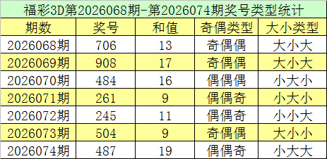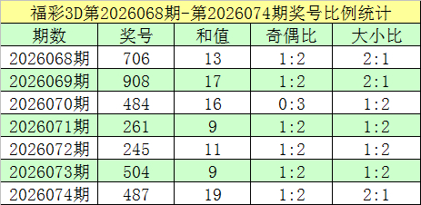 福彩3D第2026074期追思:奖号为487,奖号奇偶比为1:2,大小比为2:1,和值为19,类型为组六。