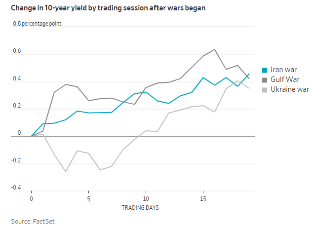 如下图所示,10年期好意思债收益率在本轮好意思伊干戈爆发以来的涨幅,基本与俄乌潦倒和海湾干戈同阶段时荒谬。