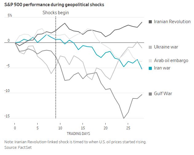 本周四,标普500指数和纳斯达克指数刚刚录得了2月28日好意思以伊开战后的最大单日跌幅。而从本轮战事爆发以来好意思股的走势看,其抛售程度基本与以往地缘政事冲击后的负面响应一致。