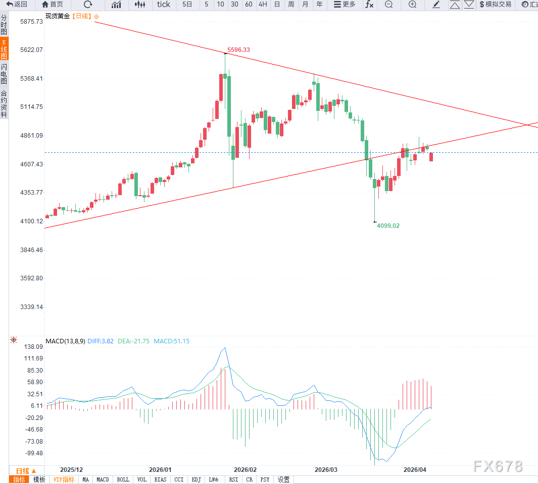 从期间面来看,日线结构披露黄金价钱在前期高位后参加鼎新阶段,现时呈现高位震憾偏弱姿首。上方要津阻力位位于4750好意思元及4800好意思元区域,而下方支抓聚合在4600好意思元及4520好意思元隔邻。动能见地方面,MACD出现高位死叉迹象,RSI自超买区域回落,披露多头动能有所松开。从4小时周期来看,黄金短线走势呈现震憾下行结构,跳空白口造成后未能快速回补,标明上方抛压仍然存在。若价钱跌破4600好意思元支抓,则可能进一步测试4500好意思元区域;反之,若重新站稳4750好意思元上方,则有望建设短期跌势并尝试回补缺口。举座来看,短期走势仍将围绕利率预期与地缘风险伸开博弈。