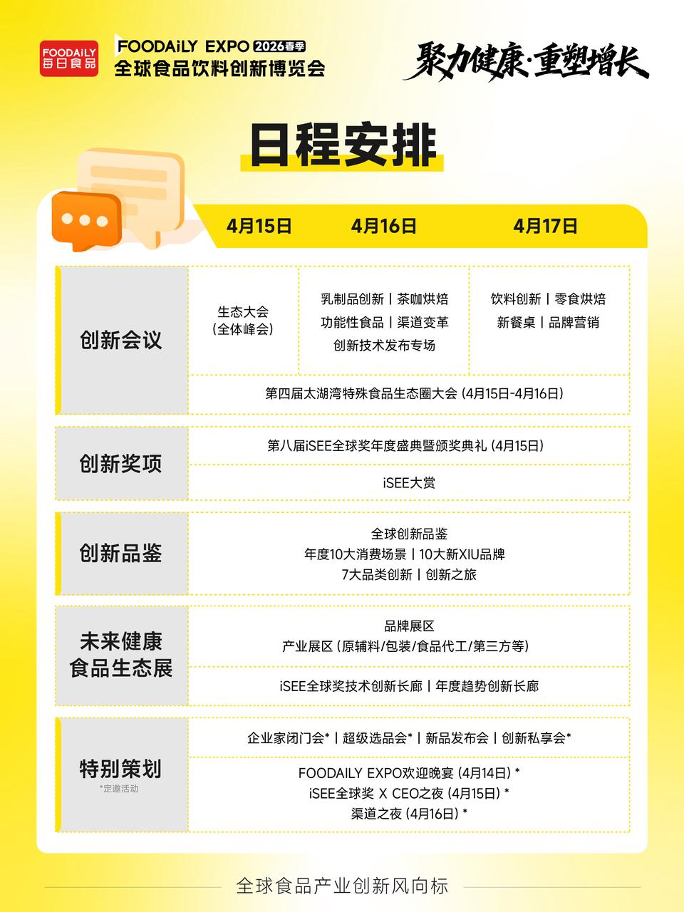 2026春季全球食品饮料创博会定于4月15日至17日在中国无锡国际会议中心举行,主题为“聚力健康·重塑增长”。作为全球食品饮料行业创新趋势的重要风向标,全球食品饮料创新博览会近日宣布与创新增长机构一柠传媒达成深度战略合作。双方将深度整合核心优势:主办方每日食品依托行业头部智库资源、全球创新视野及全产业链链接能力,结合一柠传媒在食品品牌营销、本土化传播、品效合一落地等领域的专业积淀,为食品品牌提供从创新趋势洞察到市场声量提升的全链路赋能支持,为食品品牌,尤其是源自川渝等特色区域的创新力量, 提供产业动能支持。