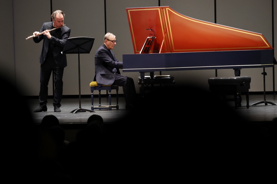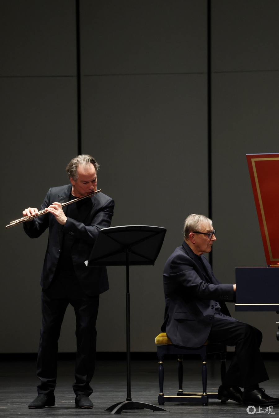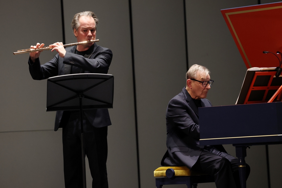 与他同台的两位艺术家,不异是各自范围的顶尖巨擘。22岁便被阿巴多任命为柏林爱乐乐团长笛首席的埃曼纽·帕胡德,拿遍杜伊诺、神户、日内瓦等外洋顶级长笛比赛冠军,2024年更斩获丹麦莱奥妮·桑宁音乐奖。