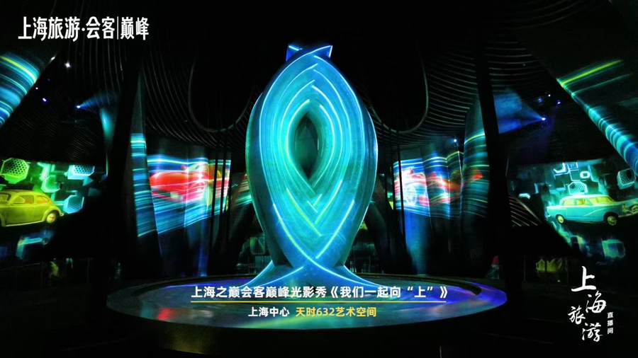 上海之巅上海汽车文化节巅峰光影秀《咱们一皆向“上”》发布近日在上海中心“天时632艺术空间”举行。