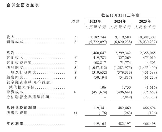 招股书清醒,在昔日的2023年、2024年和2025年,晶书册成的贸易收入诀别为东说念主民币71.83亿、91.20亿和103.88亿元,相应的净利润诀别为东说念主民币1.19亿、4.82亿和4.66亿元。