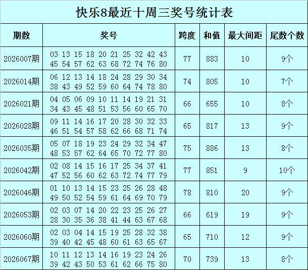福彩餍足8第2026073期开奖转头:02 03 06 08 09 20 26 27 29 35 52 57 64 67 73 74 75 76 79 80,其中奖号首尾间距为78,和值为862,最大间距为17,余数散布为:余数1包含0个号码,余数8包含1个号码,余数0、2、3、4、5包含2个号码,余数6、7、9包含3个号码。